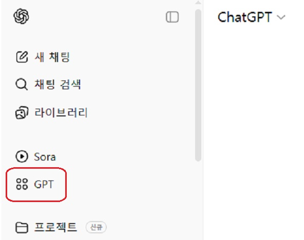 https://chatgpt.com/에 접속하여 좌측 메뉴 중 “GPT”를 클릭합니다.