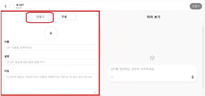 - 이름 : GPT 이름을 입력합니다.