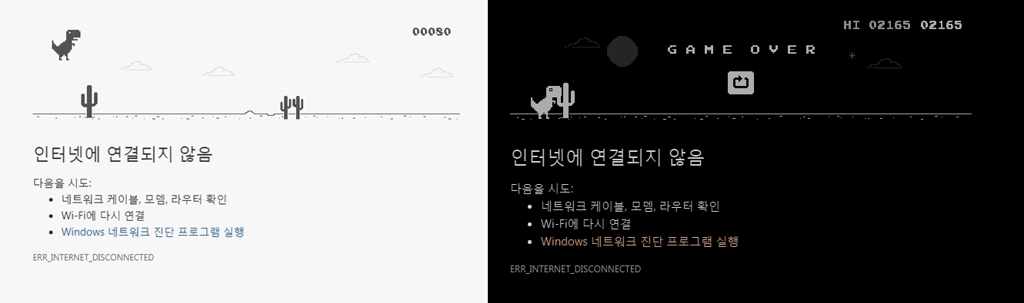 그렇지만 인터넷이 연결된 상태로도 ‘구글 공룡 게임’을 검색하시면 언제든지 플레이 할 수 있습니다.