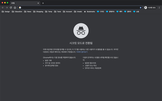 브라우저의 시크릿 모드나 프라이빗 브라우징을 이용할 경우, 쿠키와 캐시가 저장되지 않습니다.
