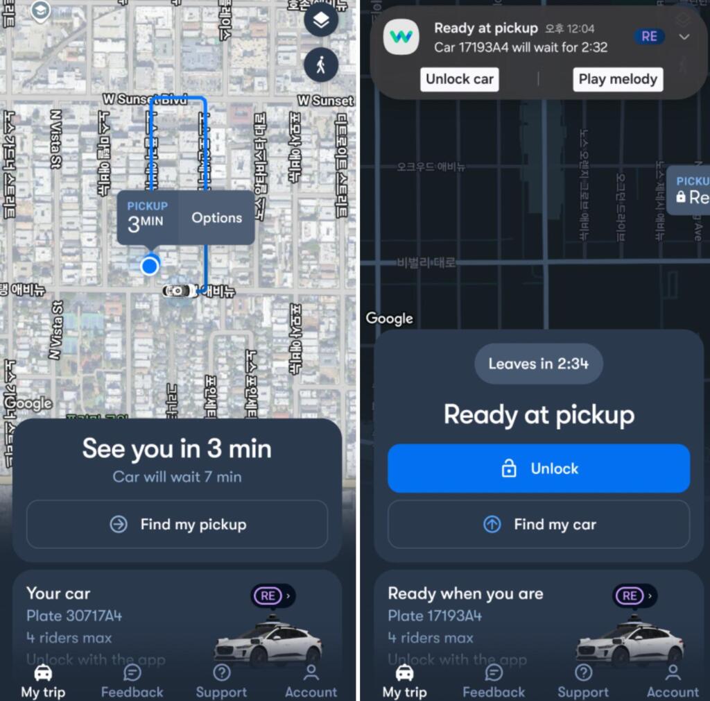 이 서비스는 자동차 내부에 안전요원이 없고, 호출·탑승·주행·하차까지 모든 과정이 완전 자동화되어 있어요.